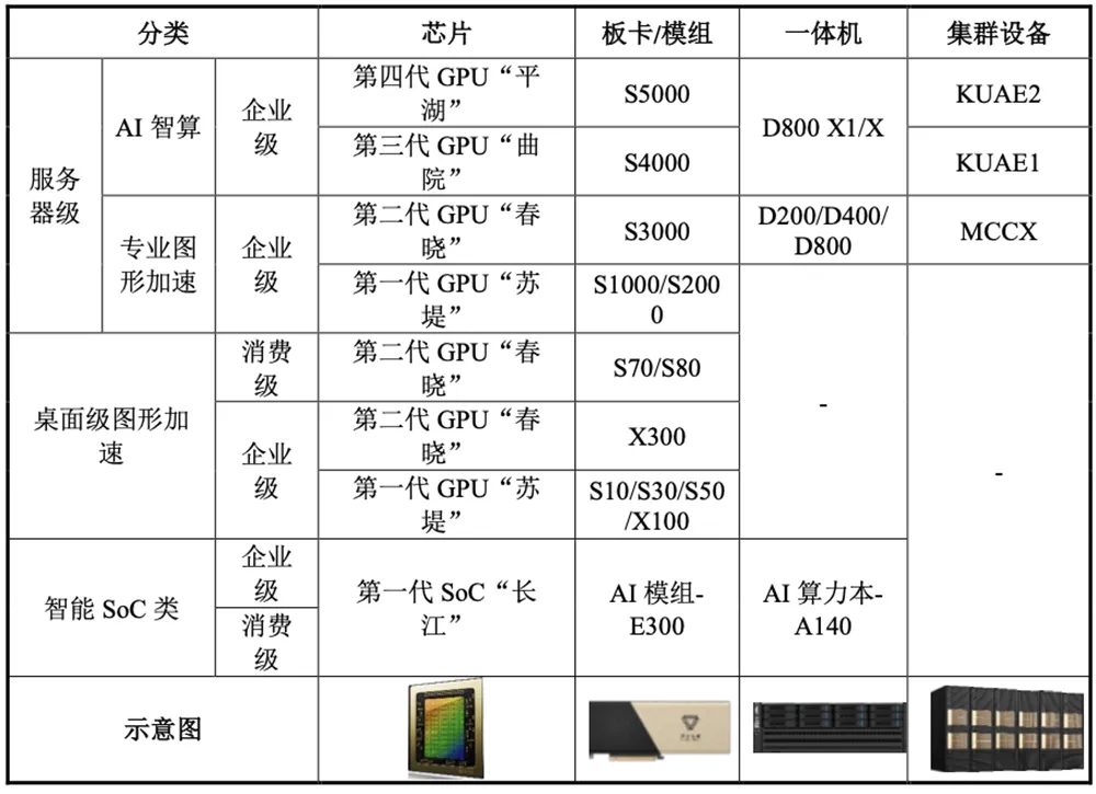 如今其通过“芯片、显卡、软件”的三位一体策略,产品矩阵涉及AI智算、专业图形加速、桌面级图形加速等范畴,符合从政务、企业智能计算到个人消费场景的多层次需求,成为目前“国内唯一全功能GPU量产”的领军企业。