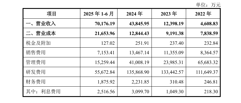 2022年到2025年上半年,其研发费用分别为11.16亿、13.34亿、13.59亿、5.57亿,已累计超43亿,公司也暂未实现盈利。招股意向书风险提示,若上市时仍处于亏损状态,则公司会进入科创成长层。