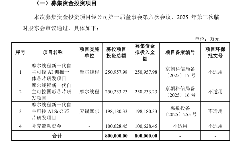 据悉此次摩尔线程募资将高达80亿元,也将用于新一代自主可控AI训推一体芯片研发项目、新一代自主可控图形芯片研发项目以及新一代自主可控AI SoC芯片研发项目。